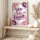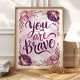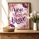 Adoptez le courage et la résilience avec cette impression d'art « Vous êtes courageux » stimulante. Caractérisée par une typographie audacieuse et écrite à la main dans des nuances de violet et de rose, ornée d'un délicat cadre floral à l'aquarelle, cette pièce sert de rappel doux de votre force intérieure. Parfait pour ajouter une touche d'inspiration et d'affirmation de soi à votre chambre, bureau ou espace personnel.