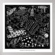 Impression d'art fantaisiste à motif de poissons noir et blanc. Par Julie Nicholls©.