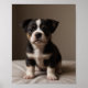 Ajoutez de la chaleur et du charme à votre maison avec cette impression d'art de chiot adorable. Avec une photo d'un doux chiot noir et blanc assis calmement, cette image capture l'innocence et la beauté du meilleur ami de l'homme. Parfait pour les nurseries, les amoureux des animaux ou quiconque veut sourire chaque jour.