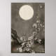 Impression d'art mural de fleurs de cerisier de lune japonaise Illustration zen vintage de sakura