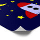 Cette douce affiche de décoration de chambre d'enfant présente un vaisseau spatial prêt à se diriger vers la lune, accompagné de la phrase "Je t'aime jusqu'à la lune et retour" dans une police blanche décontractée sur fond bleu marine. C'est parfait pour décorer la chambre d'un bébé ou d'un enfant. Cela ferait également un excellent cadeau pour une baby shower.