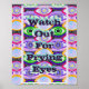Yeux de style graffiti dans des couleurs pastel avec le texte regardez les yeux indiscrets, décoration thématique parfaite pour un monde cyberpunk dystopique futuriste où la paranoïa est la nouvelle norme.