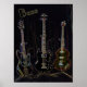 Un trio de guitares basse vintages en néon brillant.