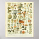 Réimpression de l'illustration de champignons Adolphe Millot de 1909 intitulée 'Champignons'