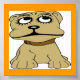 Magnifique impression colorée d'un chien de dessin animé aux grands yeux ! Arrière-sol orange avec bordure bleu clair. Idéal pour les amateurs de pop art et d'art pour enfants. Vient en grande taille. 23 par 23.