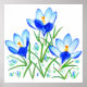 Une impression avec trois crocus bleus vibrants représentés avec des feuilles vertes délicates. Leurs pétales doux et leurs centres lumineux capturent une essence fraîche de printemps. Œuvre originale de W.B.