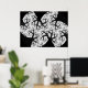 Cette impression hantante a été créée à partir d'une fractale. Il ressemble à un amas d'arbres noirs avec des troncs noirs et des branches tordues contre un ciel nocturne blanc éclairé par la lune. On dirait que vous êtes allongé sur le sol en regardant le ciel depuis l'intérieur d'une forêt dense et éffrayante. Laisse libre cours à ton imagination. Le design est disponible en plusieurs tailles différentes, dont la plus grande est présentée ici.