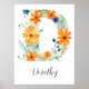 Impression de la lettre initiale florale de fleur sauvage D Art mural de nom de nurserie de fleurs sauvages, lettre florale personnalisée colorée D, chambre de fille personnalisée avec monogramme