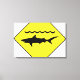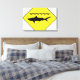 Impression en toile d'un panneau de signalisation jaune avec l'icône 'avertissement requin'.