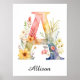 Art mural de nom de pépinière de fleurs sauvages, lettre florale personnalisée colorée A, chambre de fille avec monogramme personnalisé
