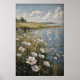 Peinture numérique de paysage printanier, champ de fleurs sauvages, décoration de ferme vintage, art de cottage antique neutre