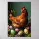 Impression de poule de Pâques rétro, Art de nurserie de printemps floral