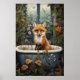 Impression de salle de bain renard, Affiche vintage de baignoire renard Fleur, Animal sauvage Académie sombre numérique
