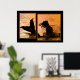 Impression d'affiche brillante d'une oeuvre de manipulation photo, montrant la silhouette d'une sirène dans l'eau au coucher du soleil. L'impression est conçue pour ressembler à deux impressions en une. Choisissez un stock papier et un cadre si vous le souhaitez. Décor mural intéressant et élégant. Une excellente pièce de conversation.