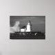 Impression en toile noire et blanche, avec un phare vintage avec vague brumeuse. Attrayant ajoute à la décoration nautique.