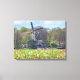 Une belle vue sur un moulin à vent et des champs de tulipes dans la Pays-Bas imprimé sur une toile.