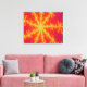 Cette impressionnante impression de toile présente une image fractale qui rappelle un orage sur Vénus. Il a un arrière - plan orange vif avec des lignes jaune vif qui sortent du centre qui ressemblent à des boulons brûlants de la foudre. Au centre de chaque éclair, il y a une ligne bleue qui me rappelle une veine qui donne le titre de Thunderstorm veineux.