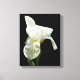 Une fleur Iris blanche sur un arrière - plan noir. Un beau décor intérieur imprimé de toile fleurie.