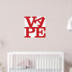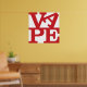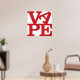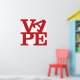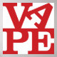 Le mot VAPE en lettres rouges. Les lettres VA sont en haut (l'A est canté latéralement) et PE en bas. Un hommage à l'art pop, dédié à tous les vapeurs.