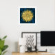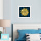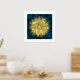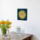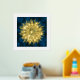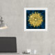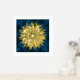 Cette belle impression d'art présente une véritable image de mandala en feuille d'or sur un arrière - plan bleu foncé. Parfait pour un studio de yoga ou un espace de méditation.