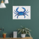 Design d'art original d'un crabe bleu coloré par l'illustratrice Carolyn McFann du Studio Two Purring Cats sur une affiche de qualité pour les amateurs de vie marine et de fruits de mer.
