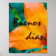 Salutation du matin espagnol Imprimer en calligraphie avec design de fleur de lys.