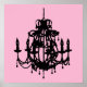 Pop art chandelier silhouette imprimé disponible en noir et rose. Graphique amusant style chic shabby chic.