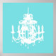 Pop art chandelier silhouette disponible en noir, blanc & rose. Style graphique amusant.