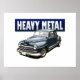 numériquement image améliorée du coupé Plymouth noir de 1946 assis sous la bannière indiquant HEAVY METAL.