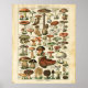 Un beau tableau de champignons français antiques, chaque champignon est marqué (en français), les couleurs sont chaudes et vibrantes sur un arrière - plan crémeux vieilli. Un joli et intéressant tableau éducatif botanique, un accent vintage pour votre maison!