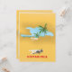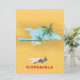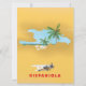 Carte d'Hispaniola, plage de sable et palmiers de l'île des Caraïbes.