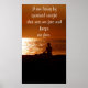 Une personne assise en train de méditer et de regarder le coucher du soleil. Vous pouvez customiser cette affiche.