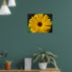 Cette belle impression présente une photographie détaillée d'un souci jaune avec un centre sombre. La photographie a été prise en utilisant la macrophotographie. Vous pouvez voir toutes les minuscules gouttelettes d'eau posées sur les pétales de cette fleur exquise.