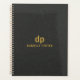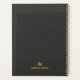 Conception classeur minimaliste avec imprimé en cuir noir et initiales en or personnalisables en monogramme et nom en brun foncé.