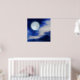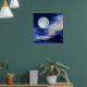 Moonscape print - design graphique mixte, numériquement montage photographique amélioré de la pleine lune, entouré d'un halo faible, contre un ciel bleu nuit profond et des nuages lune