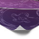 Un design en vitrail de spirales argentées et de tons de prune, sur un fond répétitif de fractales en spirale. Les spirales argentées convergent en un rose argenté, avec des pierres rondes pour accents.