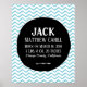 L'imprimé personnalisé d'affiche de naissance en chevron bleu présente une typographie manuscrite moderne et un motif en zag zig. Fait un grand cadeau personnel. Aussi disponible en d'autres couleurs.