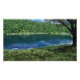 Un endroit tranquille pour se reposer, sous un arbre sur la rive gazonnée d'un lac bleu profond, en regardant les reflets des nuages et des arbres dans l'eau ondulante. Une scène 3D créée en Vue.