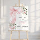 Coquette Baby shower rose floral Bow Affiche de bienvenue arc rose baby shower de bienvenue avec des arrangements floraux rose et blanc. Cette fleurie d'hiver, une douce petite fille est sur la route de l'affiche d'accueil sur le thème du baby shower est idéal pour un baby shower d'hiver.