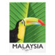 Malaisie affiche de voyage Toucan, malaisie, brunei, imprimé de vacances indonésienne.