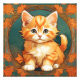 Photo Imprimée avec un chat orange dans le style d'Alphonse Mucha ! Cette adorable petite chatte aux yeux verts est encadrée de feuilles d'automne. Un cadeau merveilleux pour les amoureux de les chats et les collectionneurs Art Nouveau !