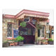 Un design simple aquarelle d'une ancienne gare de train de l'époque des trains à vapeur.