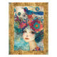 Impression Photo *~ AP95 Femme Fantaisiste Florale Paillettes d'Or