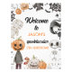 Aquarelle Orange Halloween Anniversaire Affiche de bienvenue mignonne garçons Halloween fête d'anniversaire thématique signe de bienvenue avec un squelette, tête citrouille, maman, chauve-souris, quelques citrouilles et plus. Ce signe de bienvenue d'Halloween convient à une fête d'anniversaire thématique d'Halloween et peut être utilisé pour n'importe quel âge.