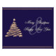 Arbre de Noël en or simple avec Joyeux Noël. Le sapin de Noël est un dessin à trait avec une étoile au sommet.