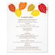 © 2013 Socialite Designs. Menu du dîner de réception de mariage pour insertion dans les cadres à ajouter aux tables. Notre élégant design feuille en chute en rouge, rouille, orange, jaune et or. Veuillez contacter Socialite Designs si vous avez besoin d'aide pour customiser ce menu pour votre événement. Chaque feuille peut être redimensionnée, déplacée, pivotée, supprimée ou dupliquée individuellement (copie) pour créer plus de feuilles. Le texte est brun foncé.