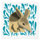 Quatrième de la série Baby Australian animaux, cette impression présente un bébé bilby contre un arrière - plan bleu vert d'eucalyptus feuilles et de noix.