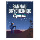 Bannau Brycheiniog Cymru affiche de voyage d'un randonneur sur une montagne.