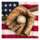 Vintage baseball, glove and bat on a vintage American flag
