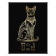 Bastet doré minimaliste stylisé, l'ancienne déesse chatte égyptienne avec son nom écrit en hiéroglyphes.